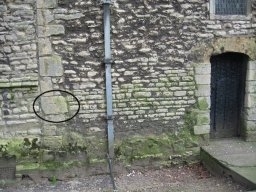 These photos should help you to pinpoint where, on the outside of the church building, you need to look to find this bench mark.